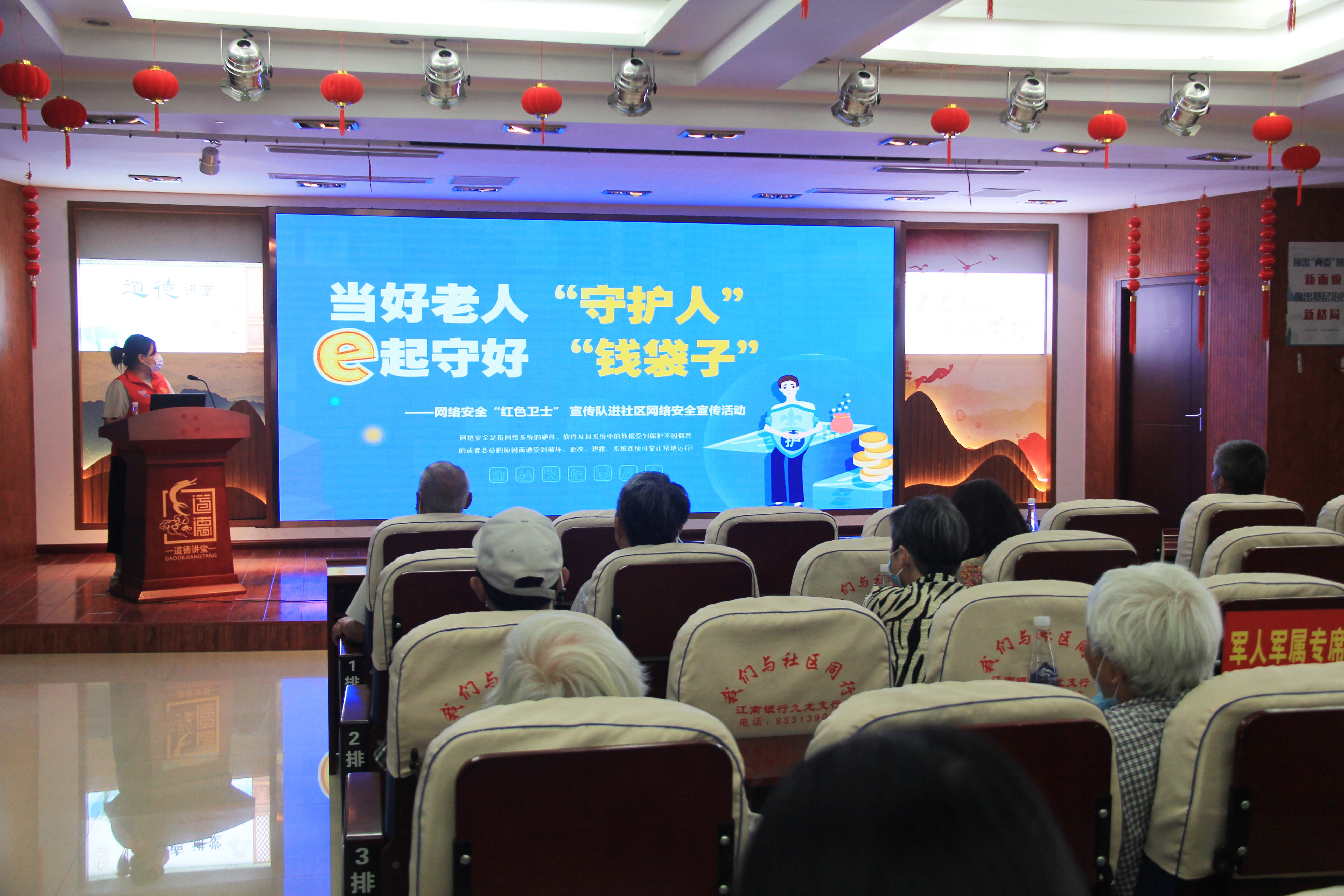? 活動(dòng)中,紅色衛(wèi)士宣傳隊(duì)通過(guò)“嘮家常”的溝通方式與社區(qū)老人和群眾互動(dòng)交流講課,結(jié)合實(shí)際案例耐心詳細(xì)講解“防范電信詐騙”、“防范養(yǎng)老金社保詐騙”、“文明綠色上網(wǎng)”等網(wǎng)絡(luò)安全知識(shí),同時(shí)對(duì)社區(qū)老人和群眾提出的各類網(wǎng)絡(luò)安全問(wèn)題作了細(xì)致解答,講課后,現(xiàn)場(chǎng)還組織了“網(wǎng)安知識(shí)有獎(jiǎng)E起答”知識(shí)競(jìng)賽,通過(guò)搶答和答題發(fā)放小禮品的方式,不僅活躍了活動(dòng)氣氛,也同時(shí)讓網(wǎng)絡(luò)安全知識(shí)和綠色文明上網(wǎng)意識(shí)更加入心入腦。