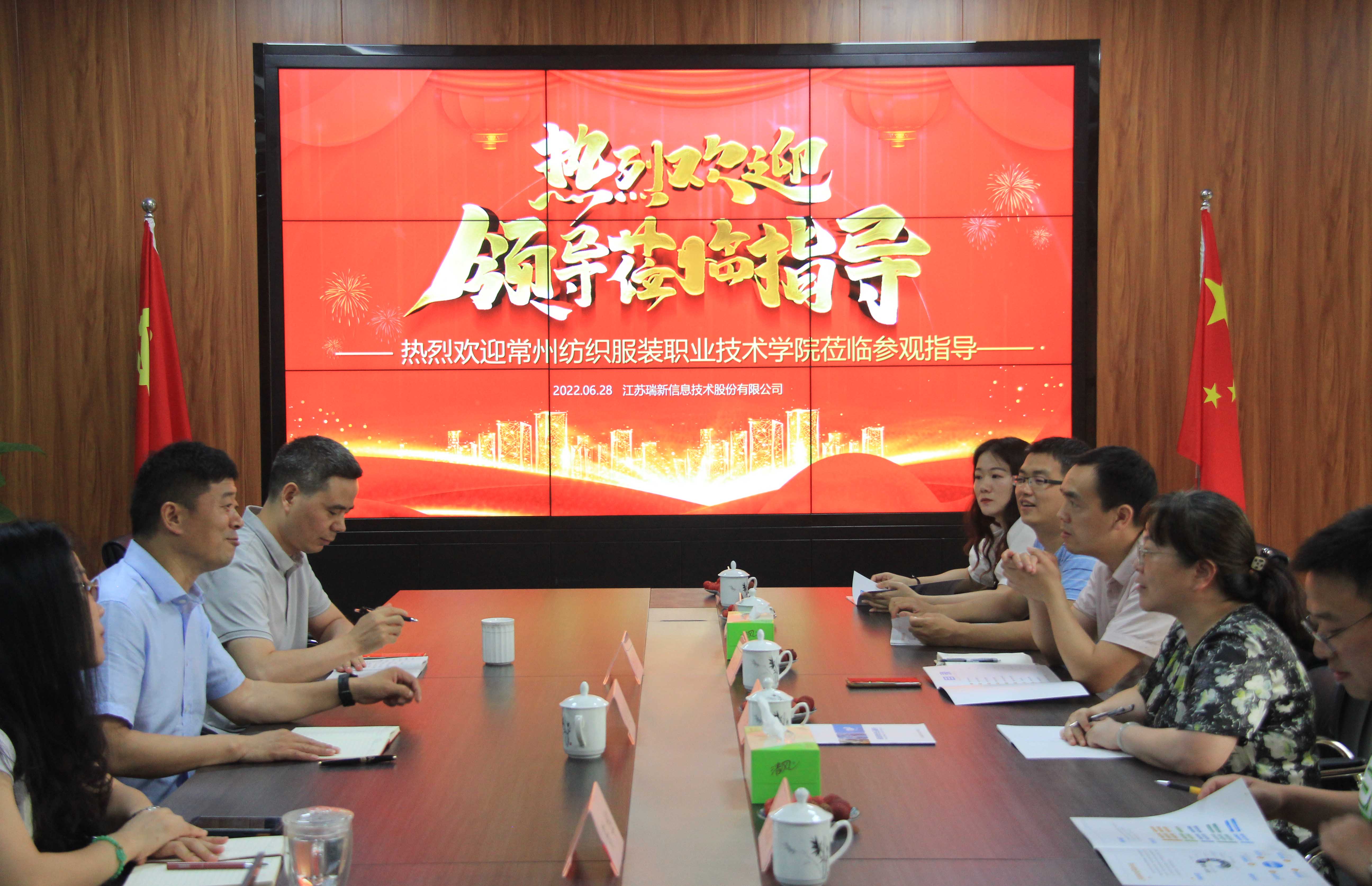? 為進一步加強校企聯(lián)合,深化人才戰(zhàn)略合作,6月28日下午,常州紡織服裝職業(yè)技術(shù)學(xué)院機電學(xué)院領(lǐng)導(dǎo)蒞臨江蘇瑞新信息技術(shù)股份有限公司參觀指導(dǎo)。
