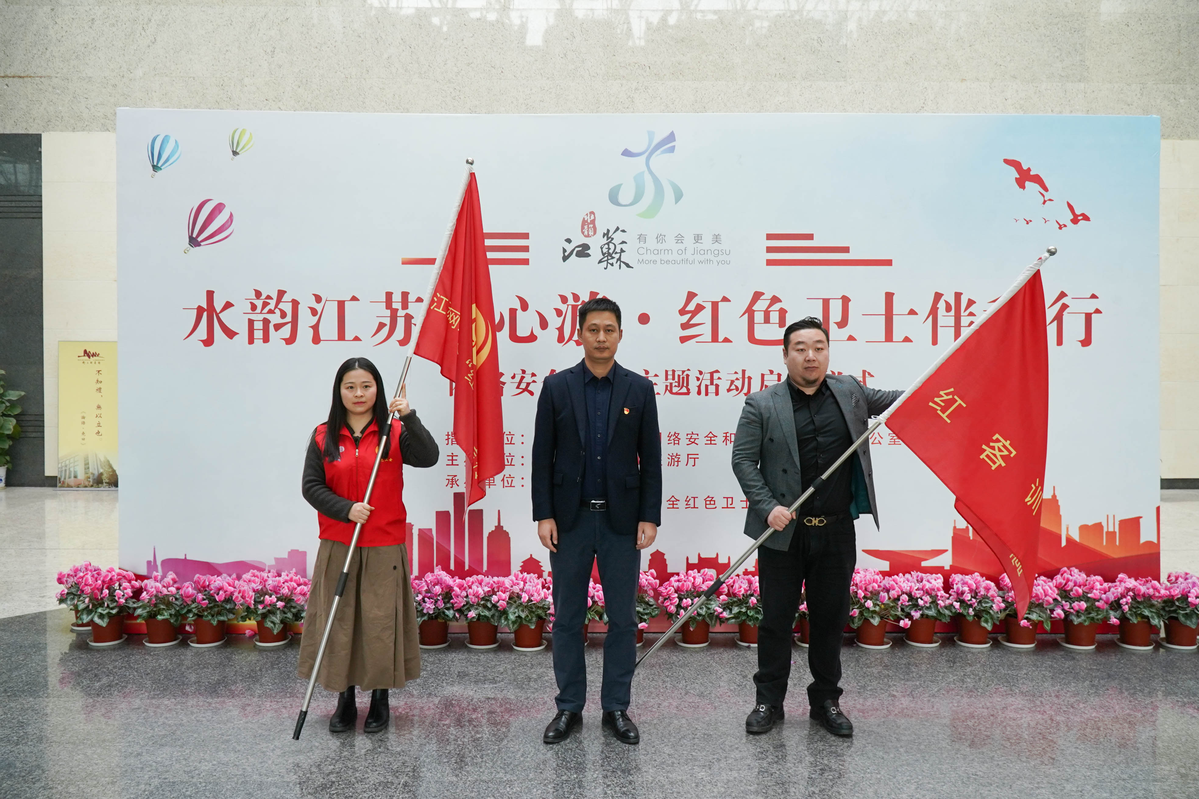 ? 3月5日上午,“水韻江蘇安心游,紅色衛(wèi)士伴我行”網(wǎng)絡(luò)安全主題活動(dòng)啟動(dòng)儀式在南京圖書(shū)館隆重舉辦,此次活動(dòng)由江蘇省委網(wǎng)信辦指導(dǎo),江蘇省文化和旅游廳主辦,南京圖書(shū)館和江蘇瑞新網(wǎng)絡(luò)安全紅色衛(wèi)士宣傳隊(duì)承辦。