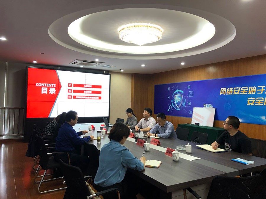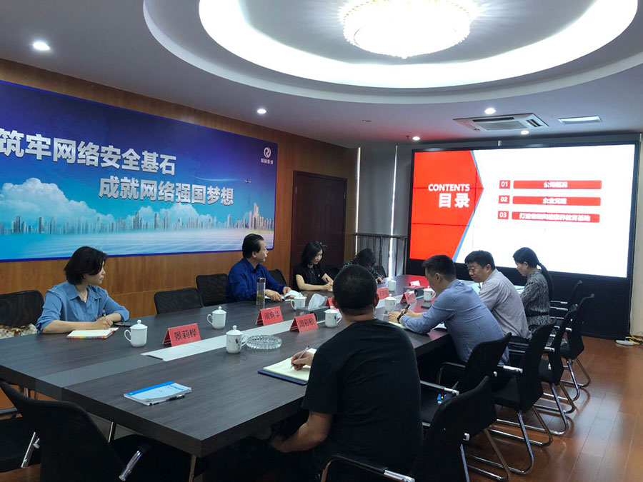 5月13日,江蘇省互聯(lián)網(wǎng)協(xié)會(huì)秘書(shū)長(zhǎng)劉湘生和常州市委網(wǎng)信辦副主任、常州市互聯(lián)網(wǎng)行業(yè)黨委副書(shū)記陸煒,常州市互聯(lián)網(wǎng)行業(yè)協(xié)會(huì)周向華秘書(shū)長(zhǎng)蒞臨江蘇瑞新指導(dǎo)工作。會(huì)上江蘇瑞新支部書(shū)記、總經(jīng)理路世強(qiáng)就公司概況、黨建及打造省級(jí)網(wǎng)絡(luò)安全人才素養(yǎng)基地工作做了詳細(xì)的匯報(bào)。就致力于打造互聯(lián)網(wǎng)行業(yè)黨建品牌的愿景與各位領(lǐng)導(dǎo)做出詳細(xì)匯報(bào)。