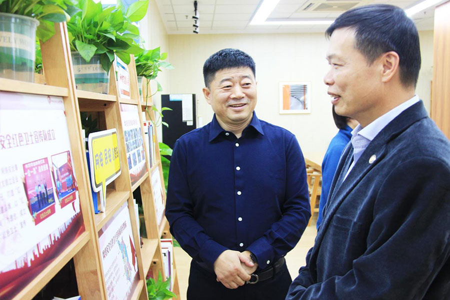 領(lǐng)導(dǎo)們首先參觀了公司榮譽墻、黨建企業(yè)文化墻,聽取公司總經(jīng)理路世強講解了公司近年來取得的榮譽、發(fā)展歷程和黨建企業(yè)文化等。
