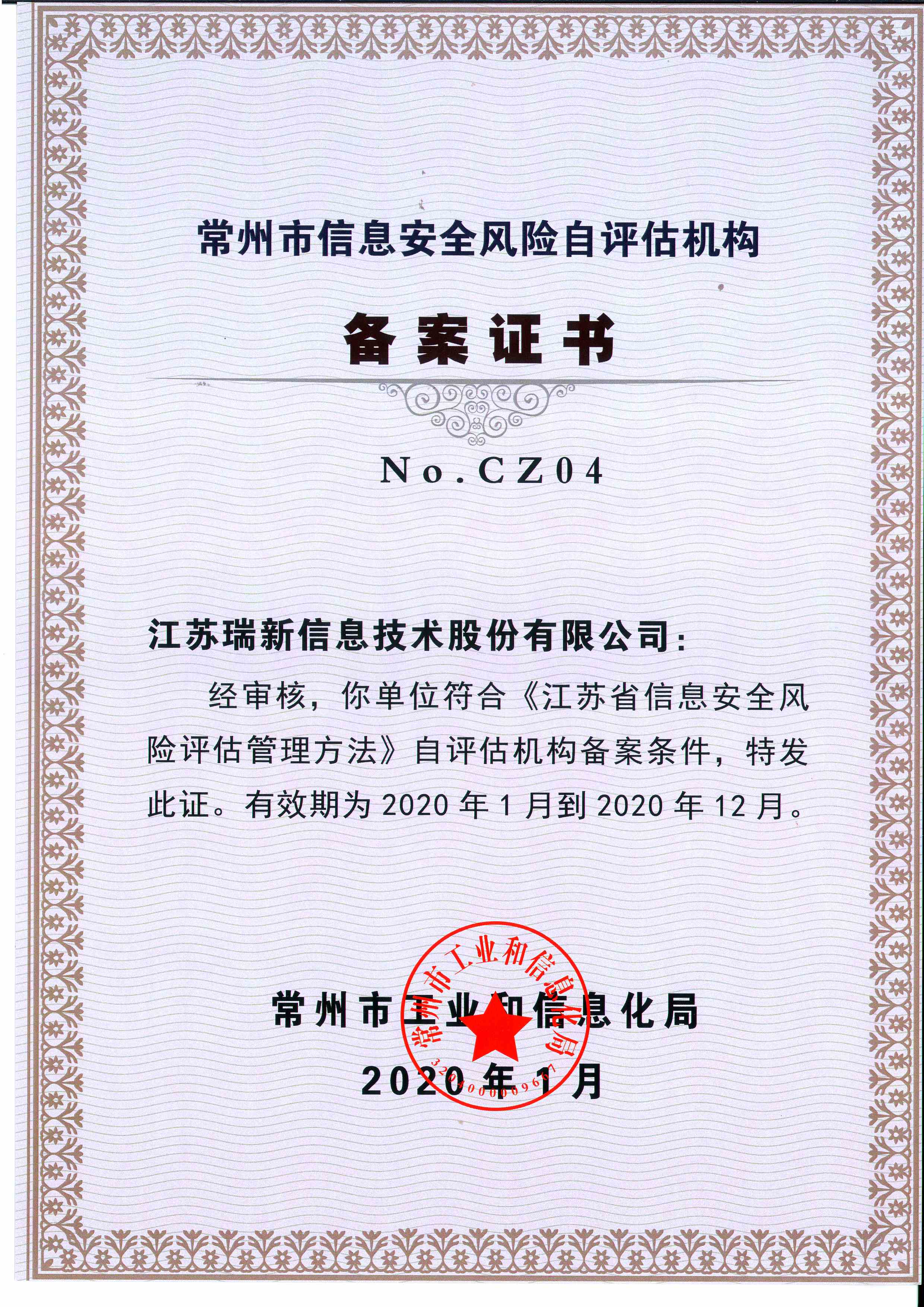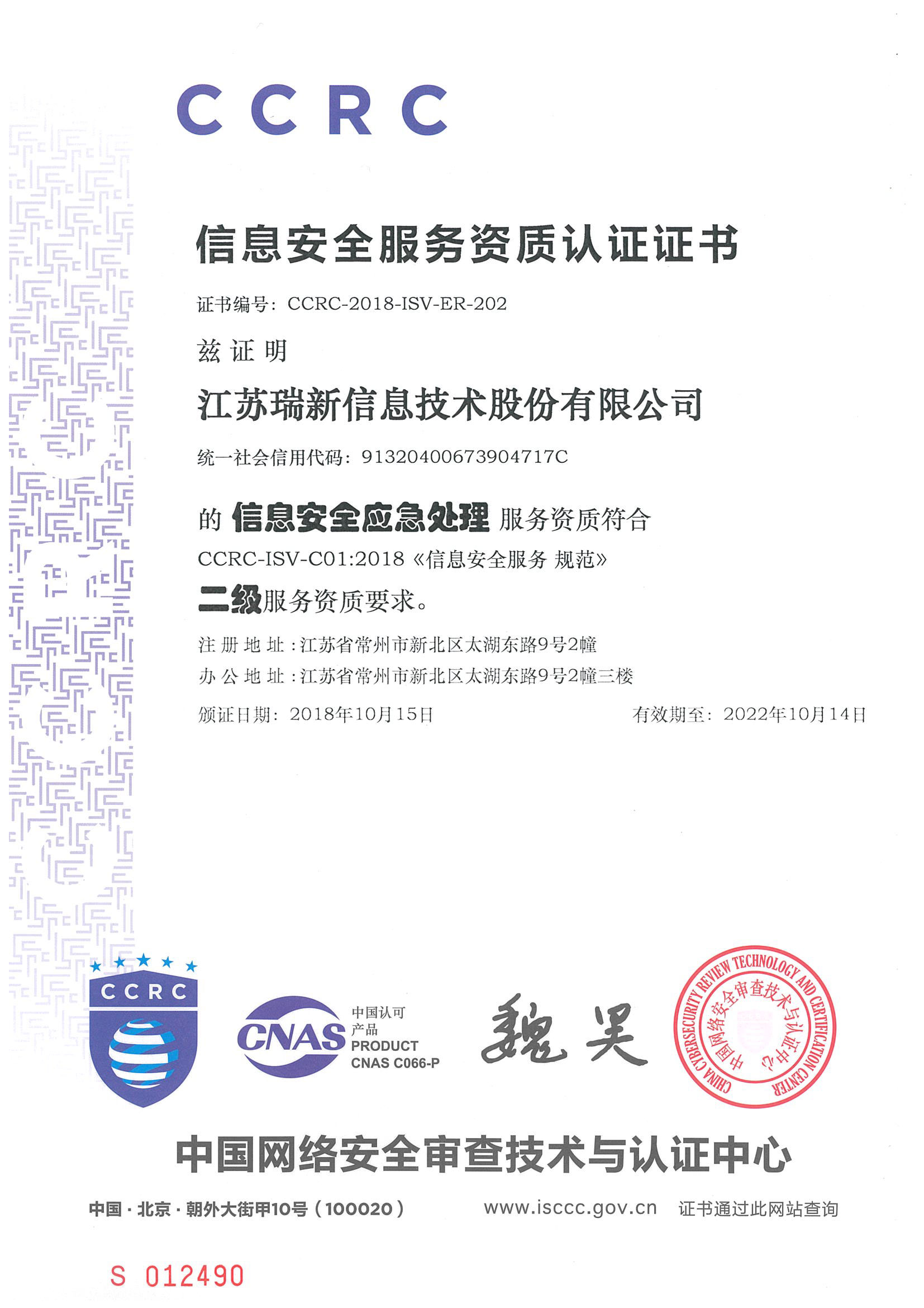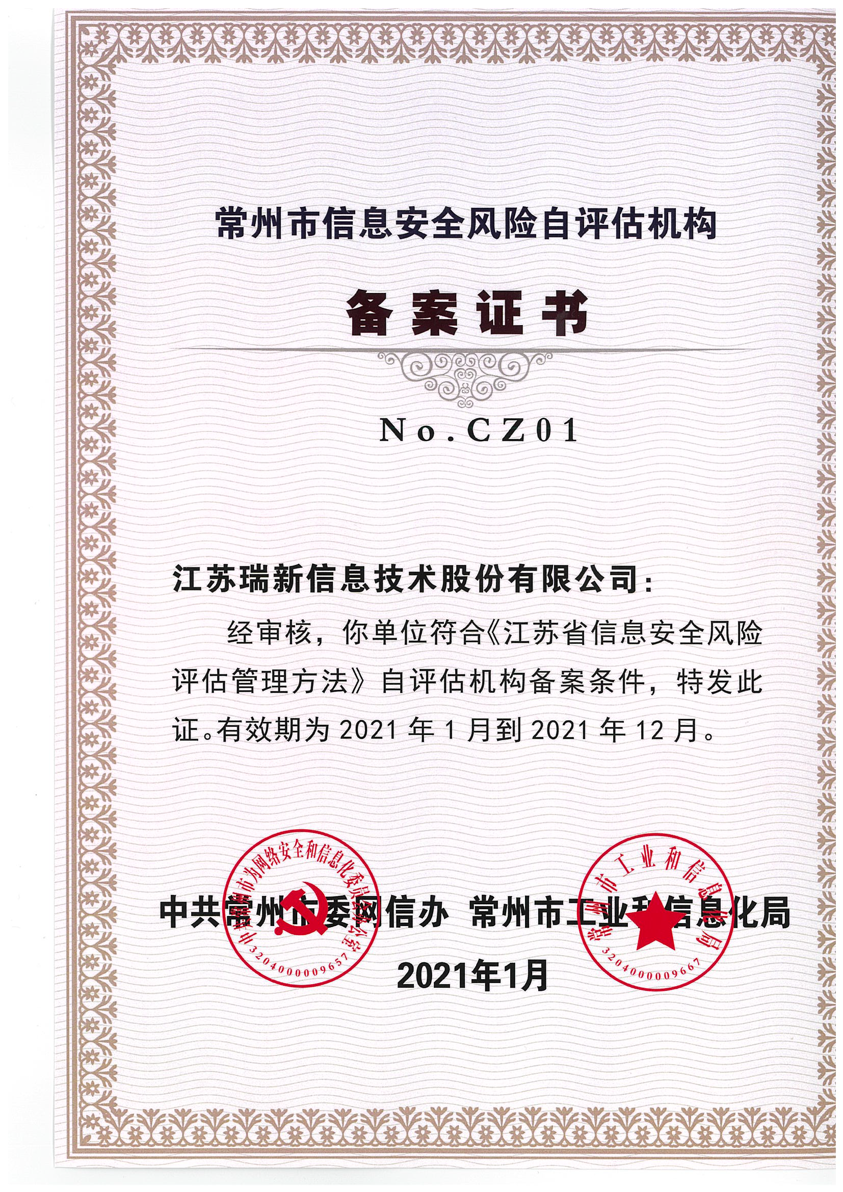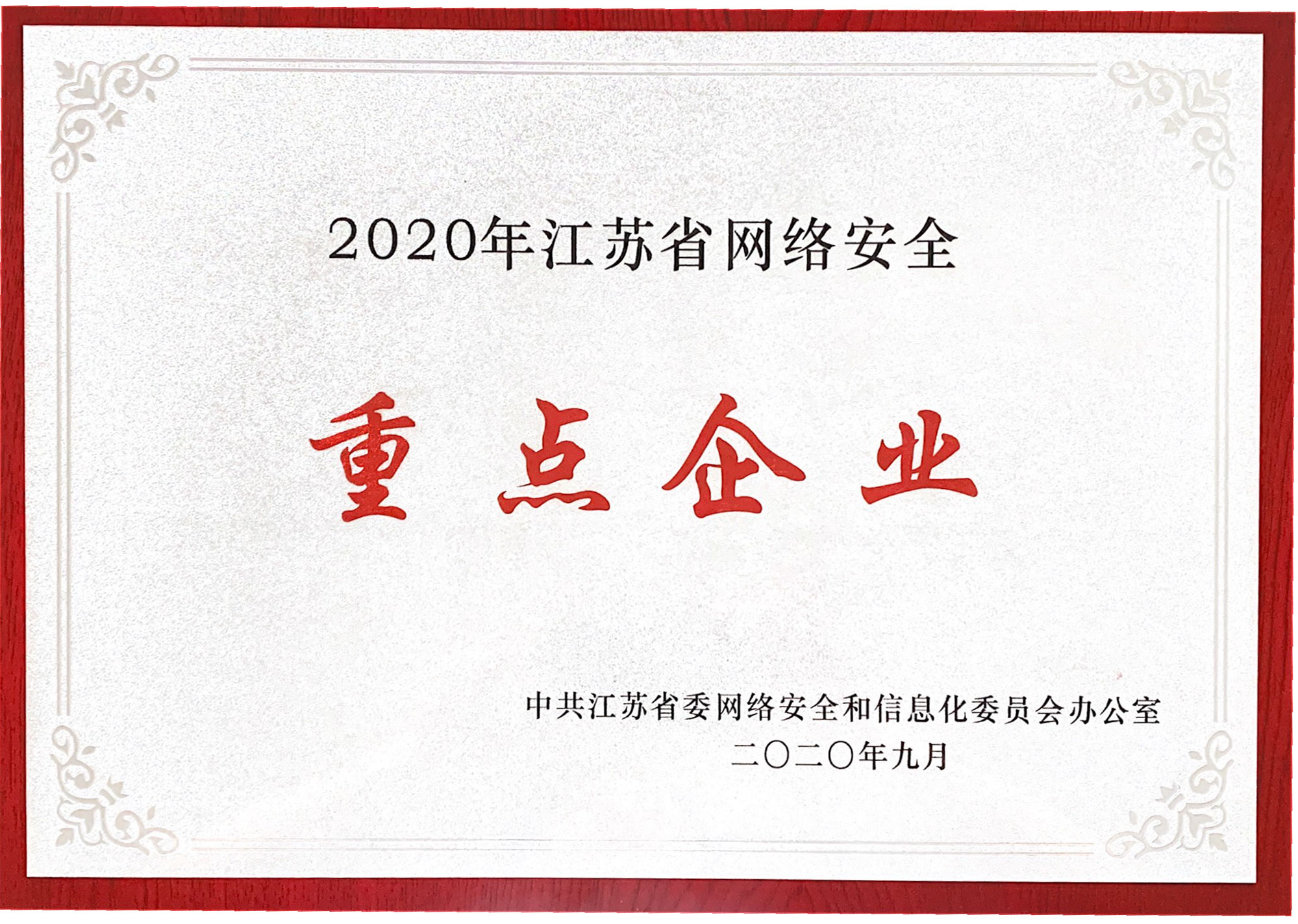 公司獲得了中國網(wǎng)絡(luò)安全審查技術(shù)與認(rèn)證中心頒發(fā)的《信息安全應(yīng)急處理》及《信息安全風(fēng)險評估》二級證書;國家信息安全測評中心頒發(fā)的《信息安全服務(wù)資質(zhì)》二級證書;江蘇省軟件行業(yè)協(xié)會頒發(fā)的《軟件企業(yè)》證書;通過了CMMI3軟件成熟度開發(fā)認(rèn)證;通過了ISO9001質(zhì)量管理體系認(rèn)證證書及27001信息安全管理體系認(rèn)證證書;是江蘇省的高新技術(shù)企業(yè)、兩化融合示范試點企業(yè)、信息安全應(yīng)急響應(yīng)支撐單位;是常州市十佳軟件企業(yè)。
